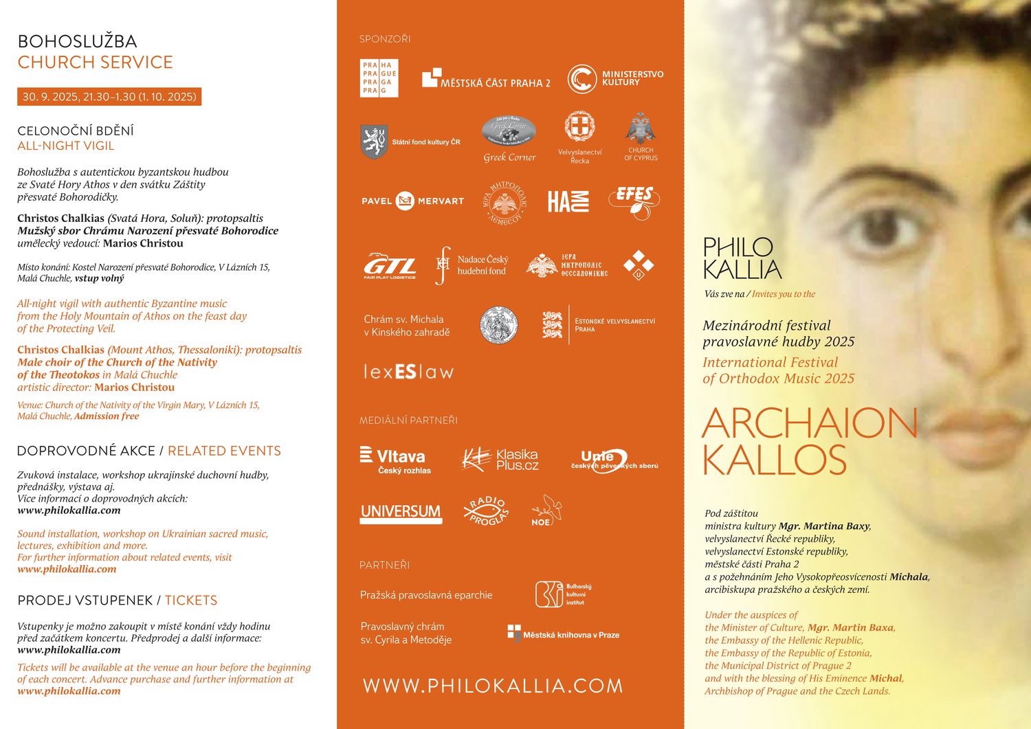 dovolte mi, abych vás co nejsrdečněji pozval na svůj koncert byzantské hudby s vokálním souborem Philokallia Ensemble. Koncert s názvem Zpěvy athonské vigilie se bude konat v rámci festivalu pravoslavné hudby Archaion Kallos v pátek 2. 10. 2025 v chrámu sv. Cyrila a Metoděje v Praze 2.
